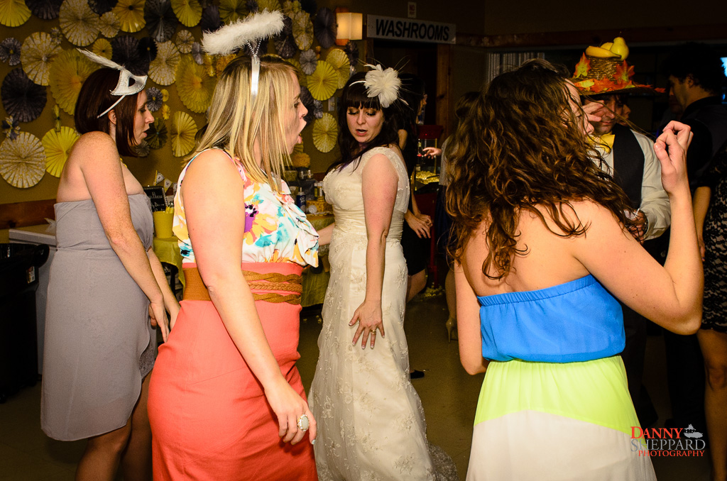 I didn’t want to get all static “deer in the headlights” photos of the dancing, so I used a slower shutter speed to show some movement in the background and let the flash do it’s thing to freeze the action I wanted frozen… like this amazing photobomb.