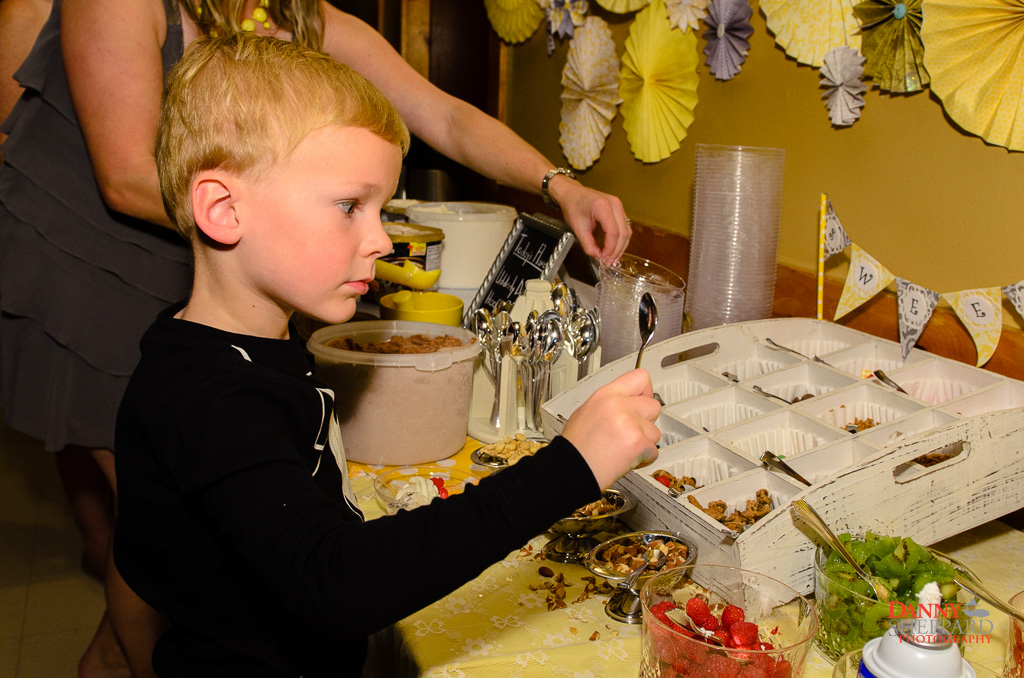If you recall from my last post about the decorations there was a Sundae Bar for desert. I think this look says it all. Yeah, it was that good. Once everyone had their fill, it was time for speeches and some entertainment (from the bride herself no less!), cake cutting etc.
