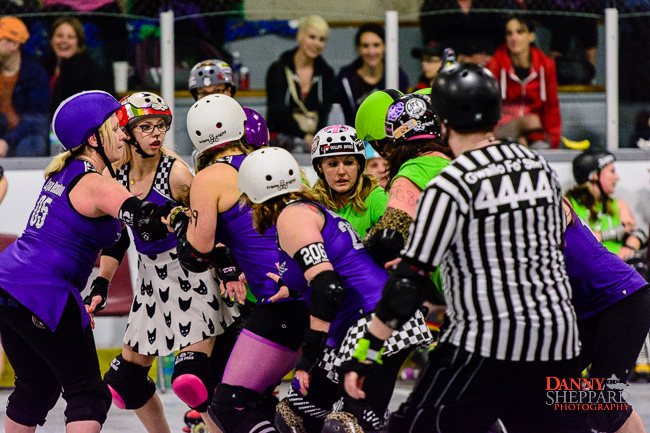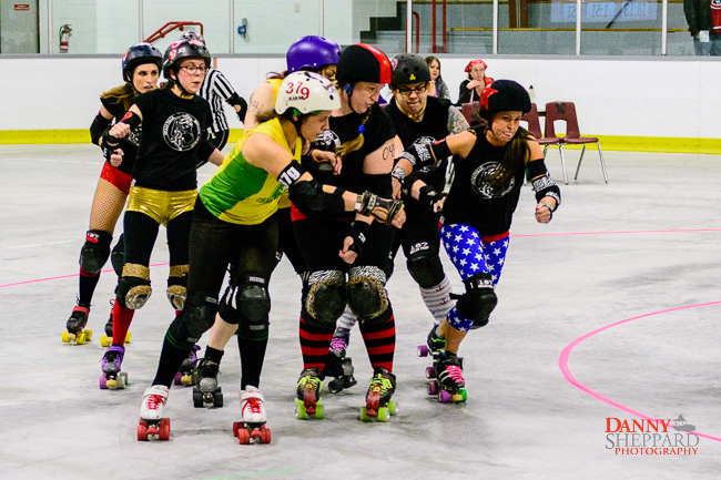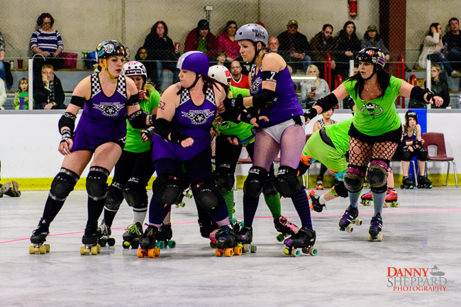 Roller derby match DRRD'Y Farmers vs. Belleville Bombshells.