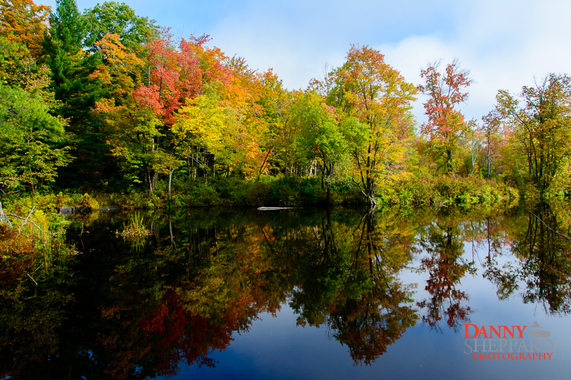 The first place I saw was on the shore of this river, where I spent way too much time getting lost in taking pictures. By the time I decided to move on, the overcast sky was starting to break up, so I hit the road again to see what else I could find. On a whim, I took a dirt side road and came across the scene in the first picture at the top of this blog. That photo is a panoramic image made of 10 images that I shot and stitched in Photoshop. There was just no other way to capture that whole scene. I kept driving down this road to the end and ran across a couple of other scenes which have real potential in a few more days as the leaves change more, so I’ll be going back for sure!