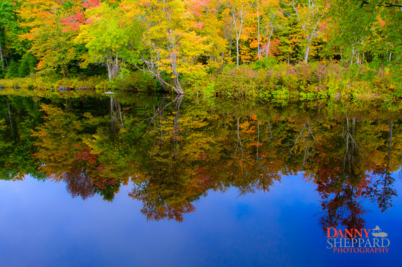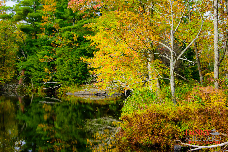 The first place I saw was on the shore of this river, where I spent way too much time getting lost in taking pictures. By the time I decided to move on, the overcast sky was starting to break up, so I hit the road again to see what else I could find. On a whim, I took a dirt side road and came across the scene in the first picture at the top of this blog. That photo is a panoramic image made of 10 images that I shot and stitched in Photoshop. There was just no other way to capture that whole scene. I kept driving down this road to the end and ran across a couple of other scenes which have real potential in a few more days as the leaves change more, so I’ll be going back for sure!